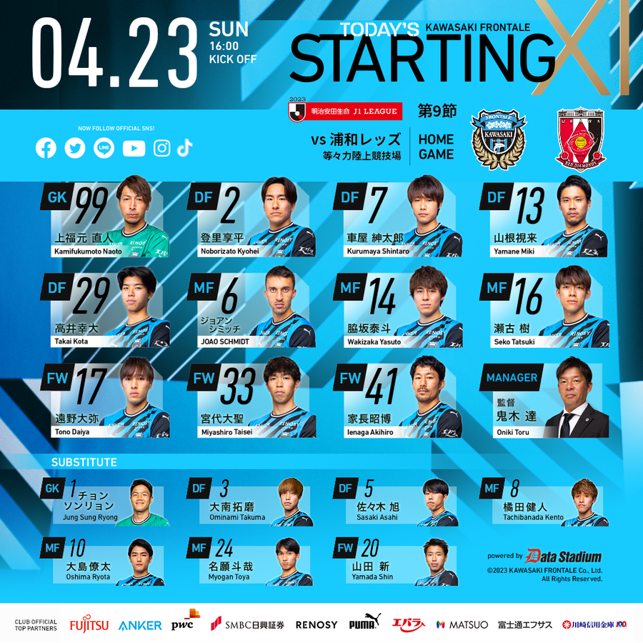 ゲーム記録 速報 2023 J1リーグ 第9節 Vs 浦和レッズ Kawasaki Frontale